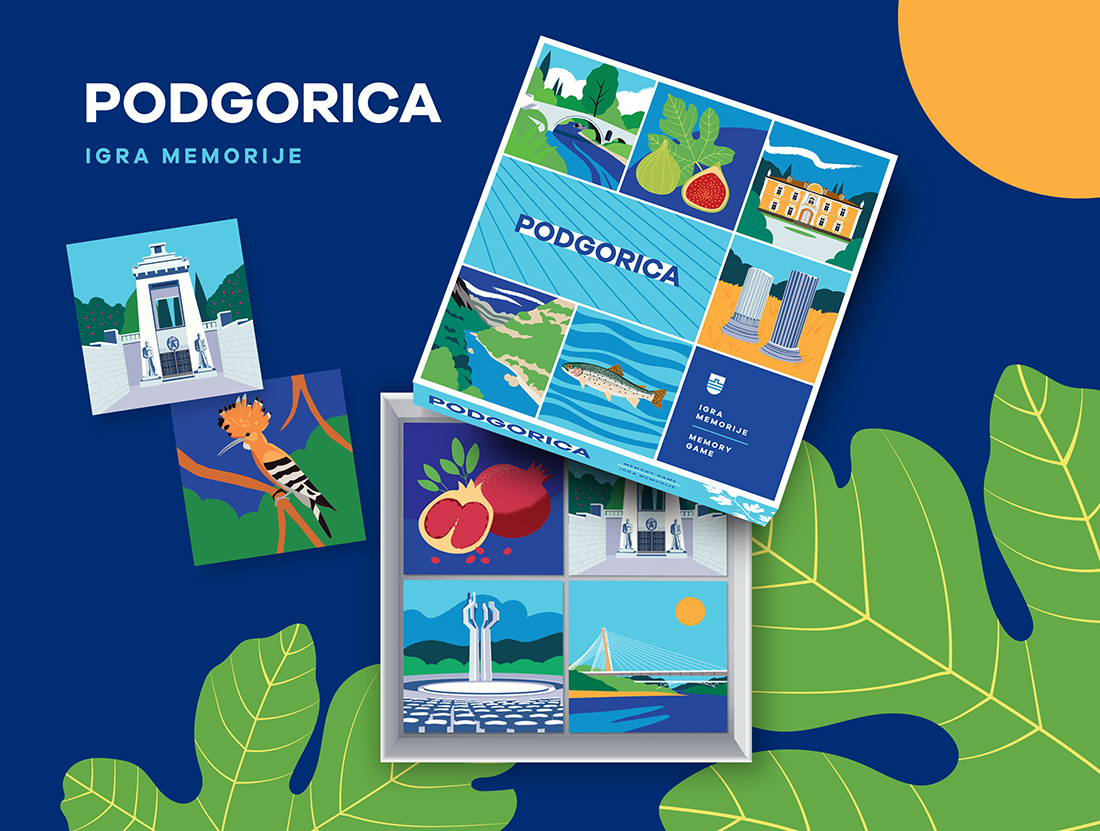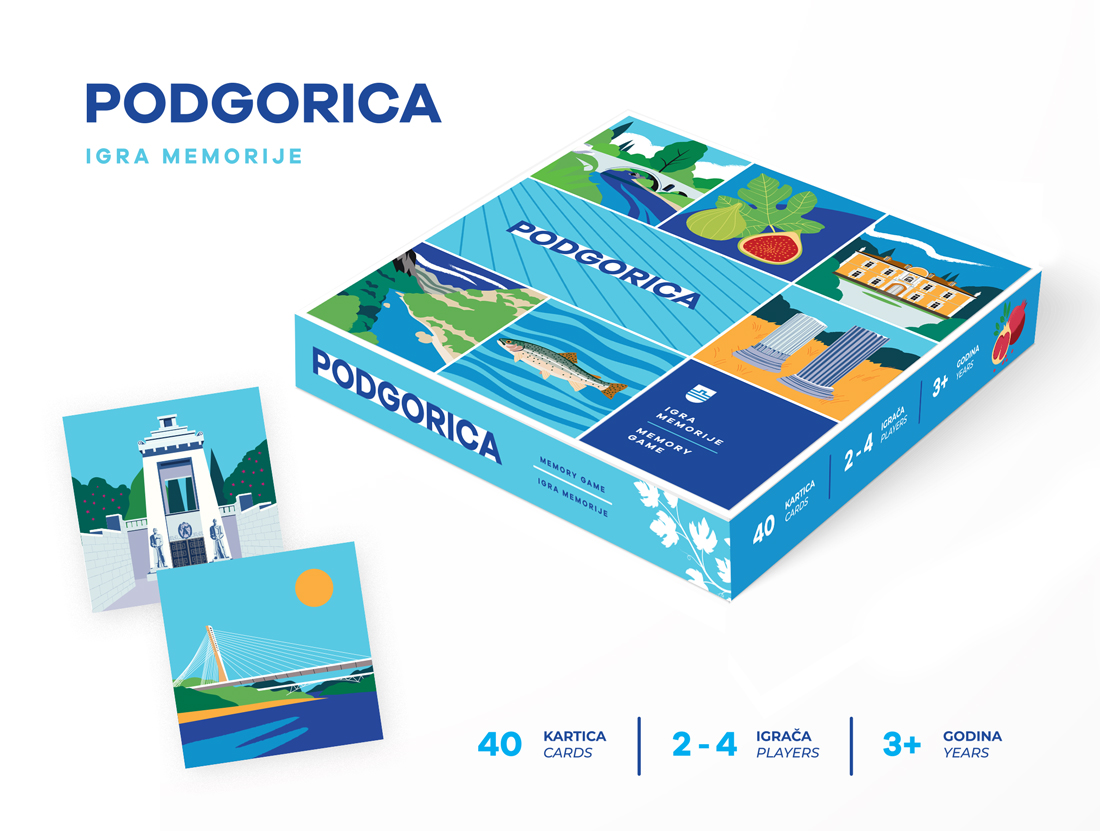Podgorica memory game. Project supported by the Capital City Podgorica. Publishers: Studio ribizla. and CS Cassiopeia Illustrations: Monika Lang (monikalang.com) Category: Print Date: 12.12.22. Share: