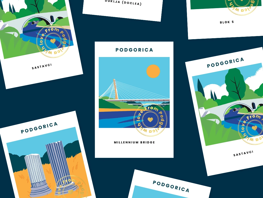 With the support of Secretariat for Culture and Sports of the Capital City of Podgorica and The Capital City of Podgorica, a set of 5 postcards featuring some of our favorite city motifs is now available—perhaps for a lovely greeting, a message from Podgorica, or as a souvenir from the Capital City. Or maybe as a new picture to adorn your home.